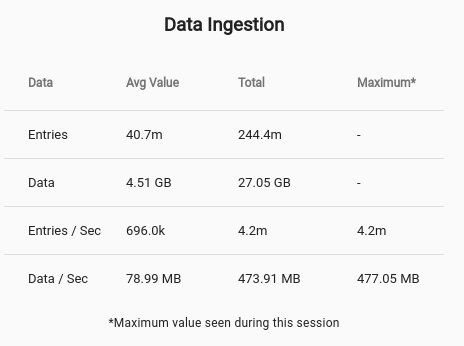 In order to kick the tires of the newly deployed Gravwell cluster we fired up an entry generator that throws line broken log entries as fast as it can. For the purpose of this blog entry we decided to ingest Goonies quotes, the official unit of measurement is SPS (Sloth’s per second); this cluster does 4.2 million SPS.